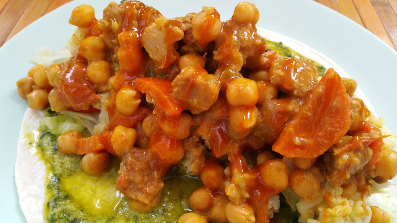 - Ponemos en remojo la soja texturizada en una taza de caldo vegetal caliente 20 minutos, escurrimos y reservamos.